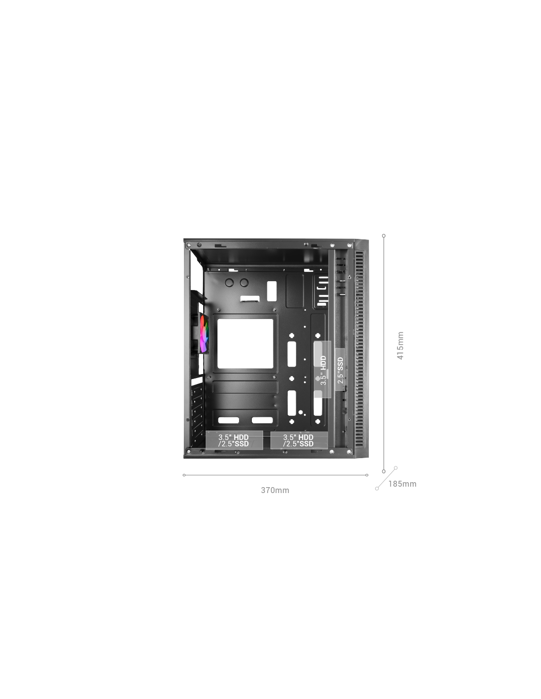A MC-BLAZE combina design moderno, iluminação e eficiência térmica, oferecendo um equilíbrio perfeito entre estilo e funcionalidade. A sua frente com faixa LED e janela lateral completa permitem exibir cada componente com um acabamento limpo e sofisticado. Equipada com um ventilador traseiro FRGB e grelha lateral de ventilação, garante um fluxo de ar otimizado. Compatível com placas-mãe ATX, Micro-ATX e Mini-ITX, suporta GPUs de até 300mm e possui 7 slots de expansão, garantindo máxima versatilidade em qualquer configuração.