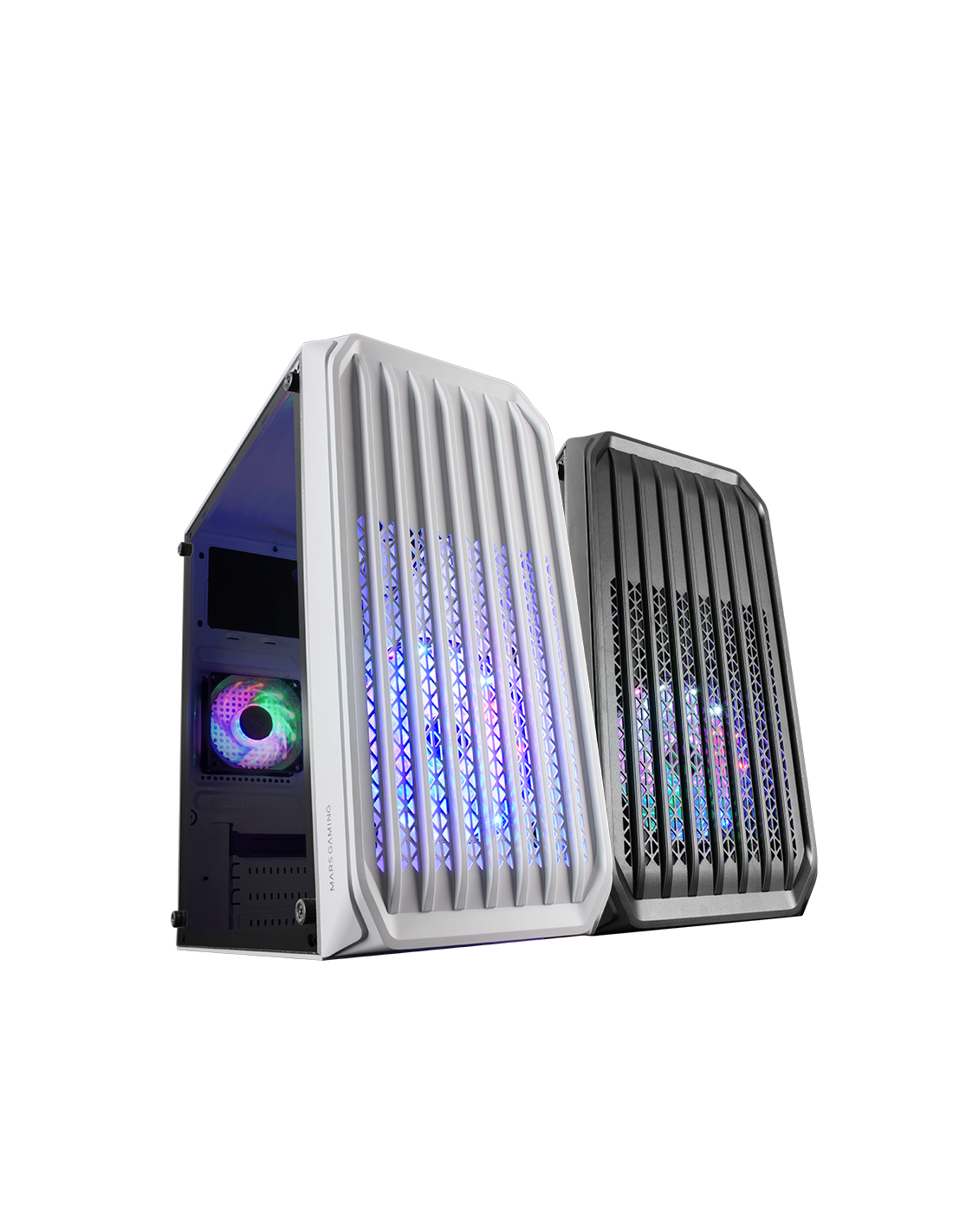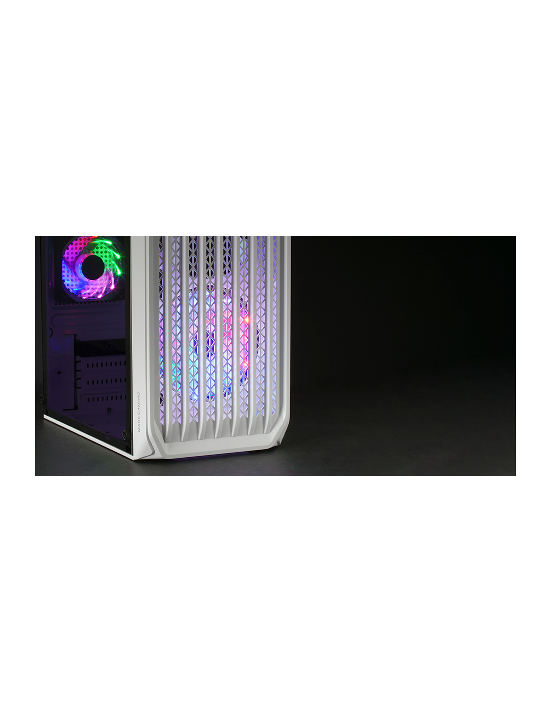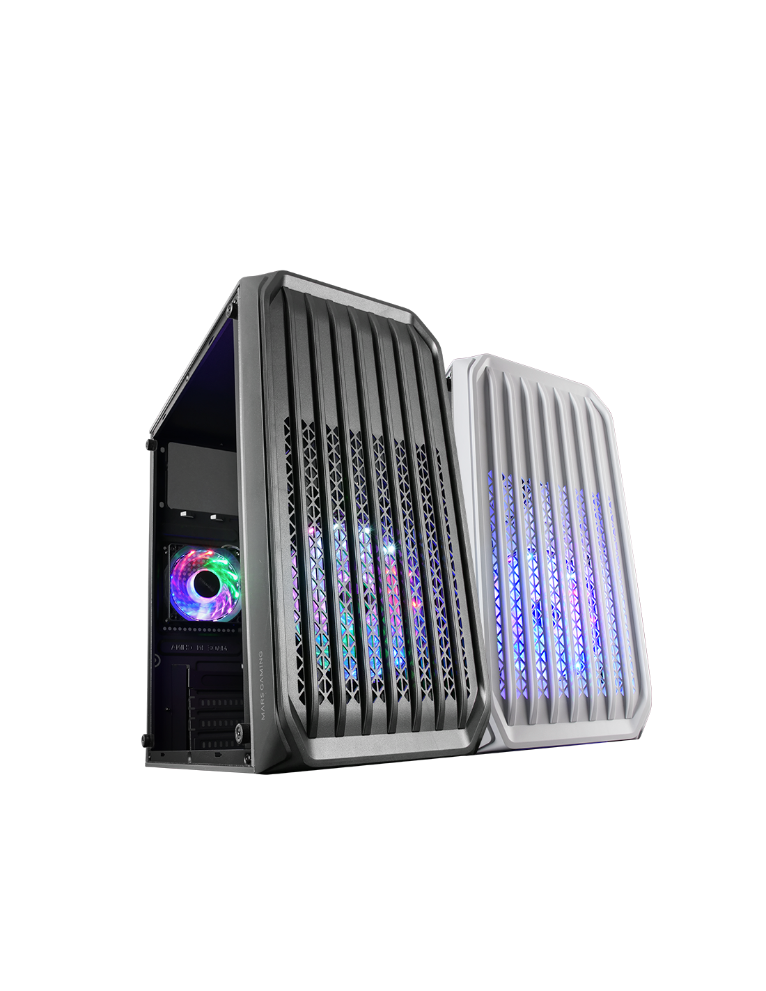 Caixa compacta para jogos com uma refrigeração excelente graças aos seus 2 ventiladores FRGB, seu painel frontal com design de grade e suporte para refrigerações líquidas até 240mm*