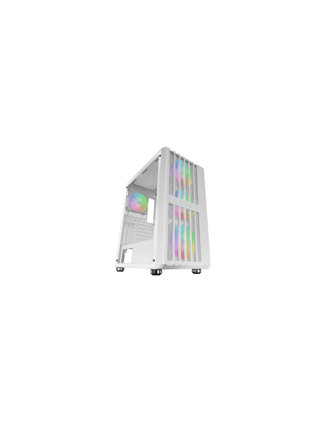 A caixa MC-VAULT combina estilo, desempenho e personalização num design impressionante. Com uma frente em malha que otimiza o fluxo de ar, 4 ventoinhas ARGB de 120mm e uma janela lateral em vidro temperado, esta torre destaca-se tanto pela sua estética como pela sua funcionalidade. Oferece amplo espaço interno para placas gráficas de até 358mm, compatibilidade com sistemas de refrigeração líquida de até 360mm e montagem vertical da GPU, garantindo total flexibilidade para configurações de alto desempenho e uma gestão eficiente do espaço.
