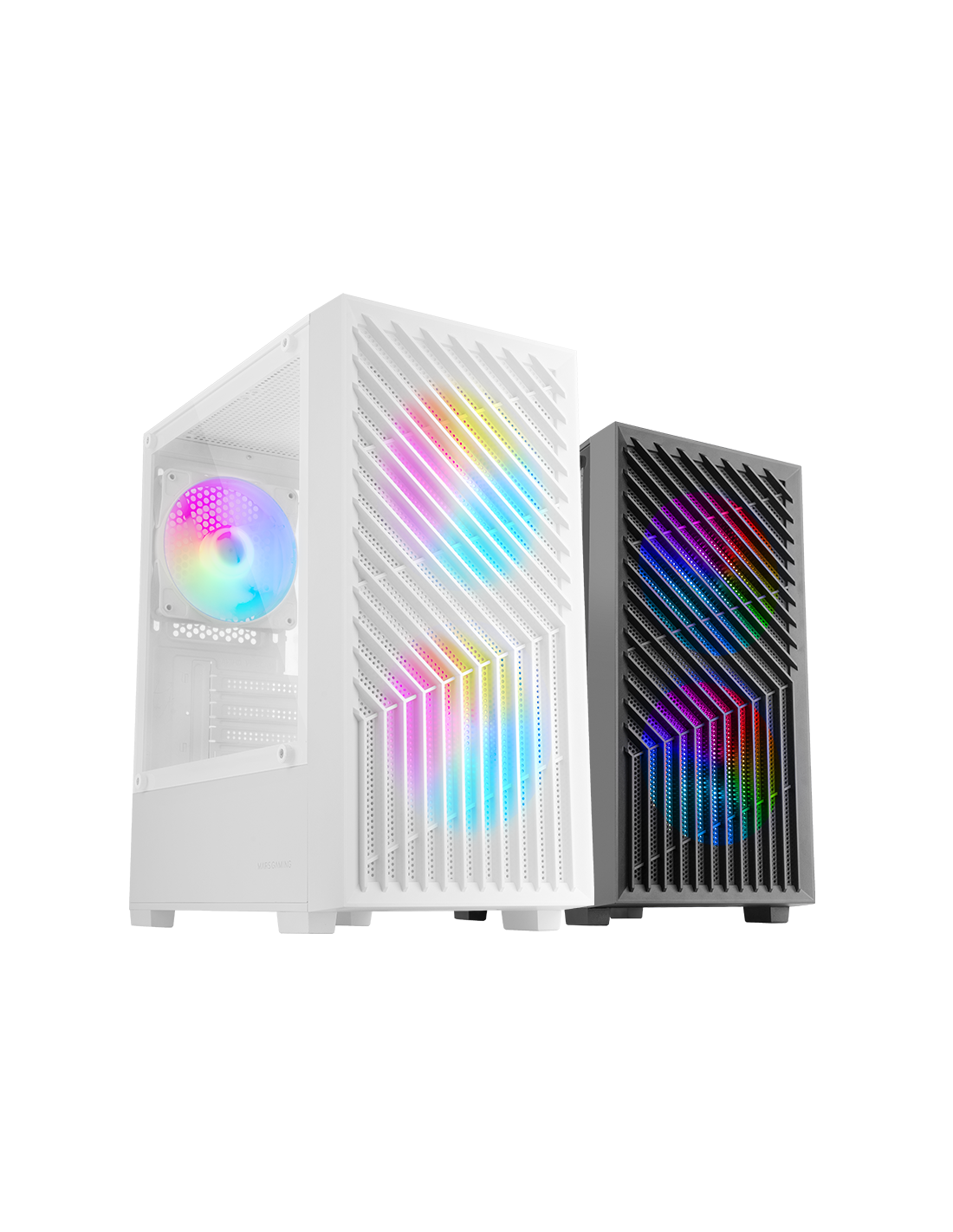 A MC-VORTEX é a caixa de jogo perfeita para quem procura potência num formato compacto. O seu design MicroATX com frontal Mesh, janela de vidro temperado e 3 ventiladores FRGB Rainbow oferece um excelente desempenho térmico e um visual espetacular. Com capacidade para até 7 ventiladores, suporte para refrigeração líquida, design de câmara dupla e espaço para os componentes mais avançados, a MC-VORTEX combina desempenho, estilo e funcionalidade.