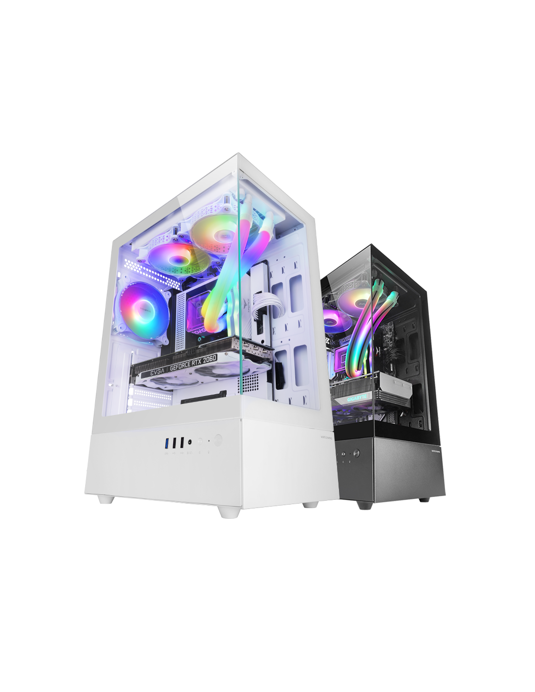 A MC-XO é uma semitorre ATX projetada para aqueles que procuram o equilíbrio perfeito entre desempenho e estética. Com um design otimizado para refrigeração, inclui um ventilador FRGB traseiro de 120mm, um sistema de câmara dupla para uma gestão térmica eficiente e o inovador sistema SIDECOOL, que maximiza o fluxo de ar lateral sem comprometer a estética limpa e sofisticada do gabinete. Seu design moderno e funcional a torna uma opção ideal para setups de jogos e profissionais.