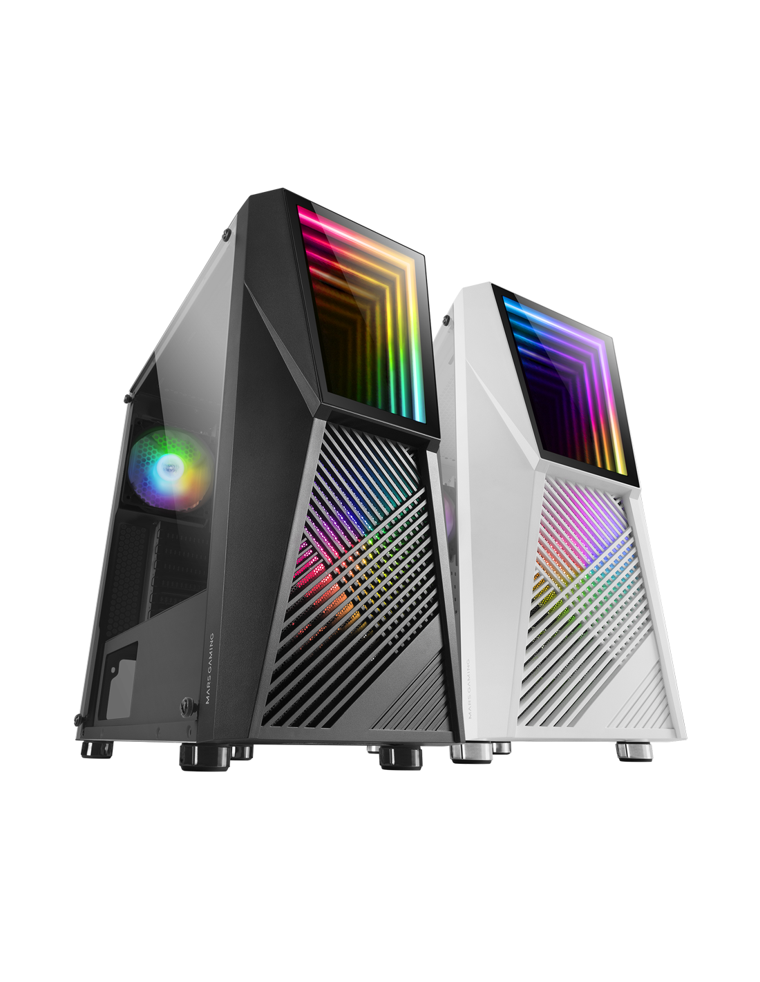 Deixe-se hipnotizar pelo seu ESPEJO INFINITO ARGB enquanto desfruta de uma poderosa refrigeração dupla de série e muito espaço para todos os seus componentes.