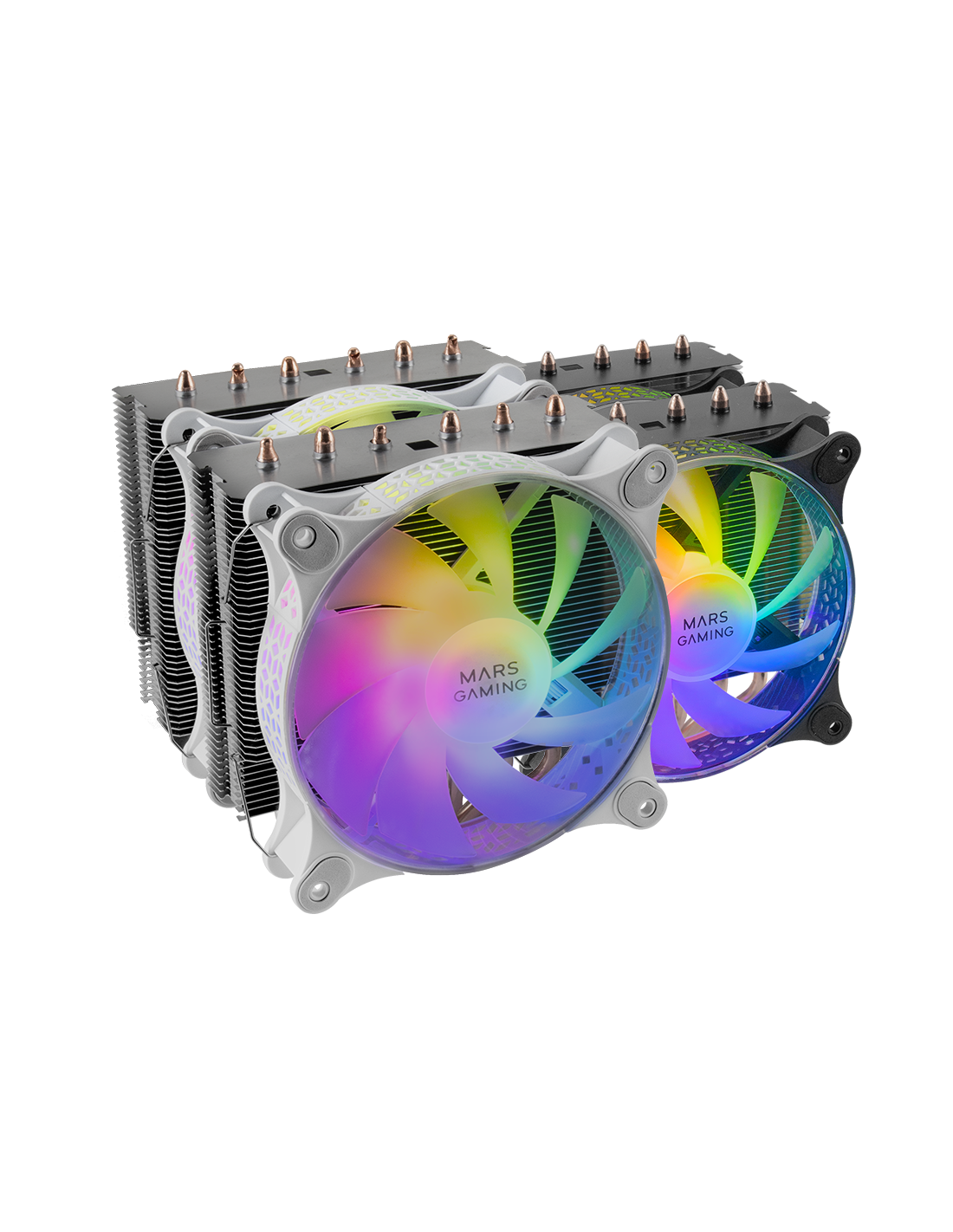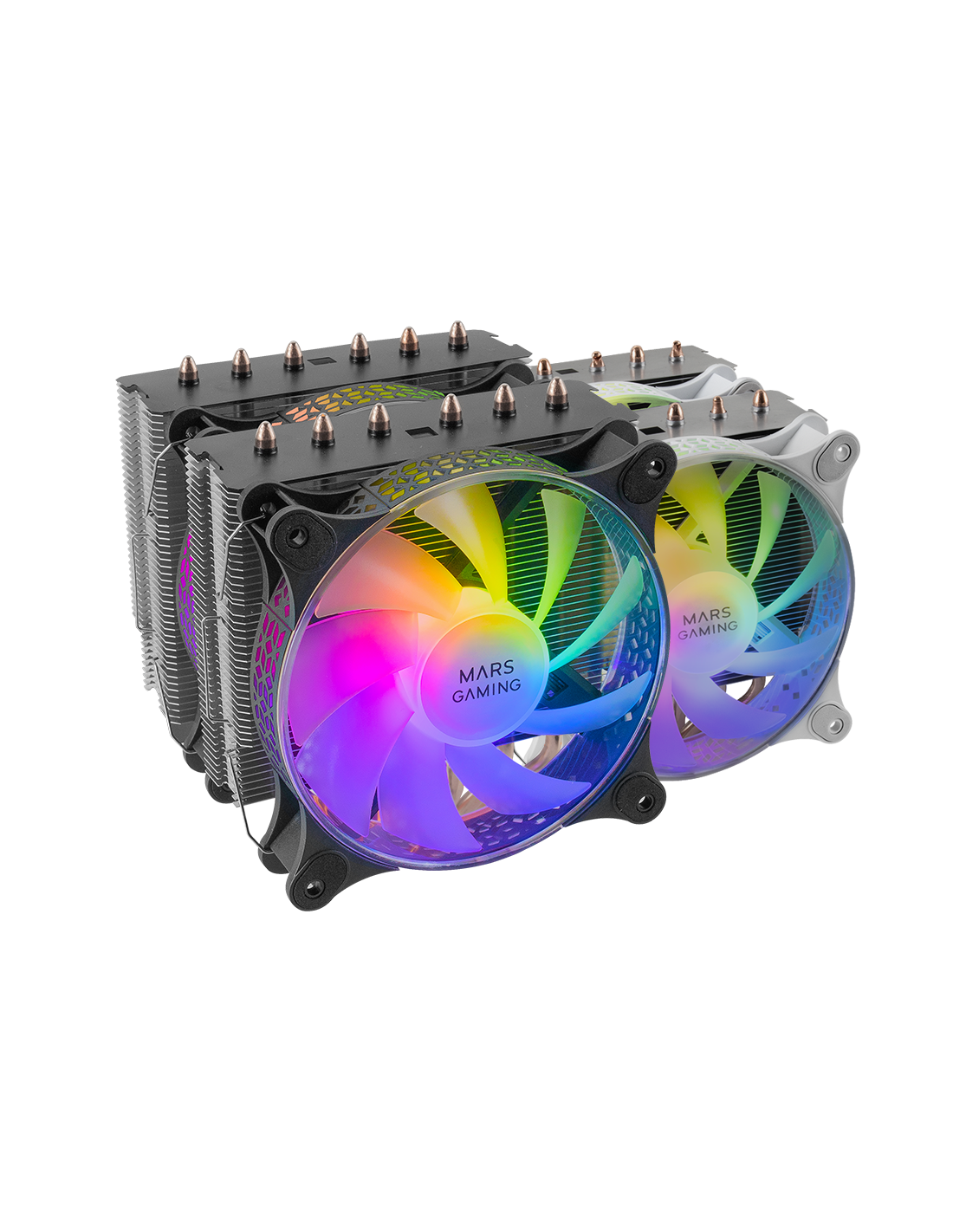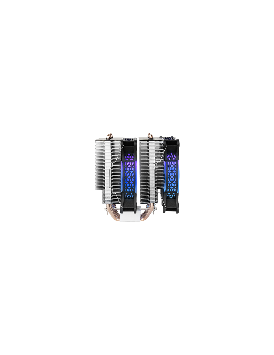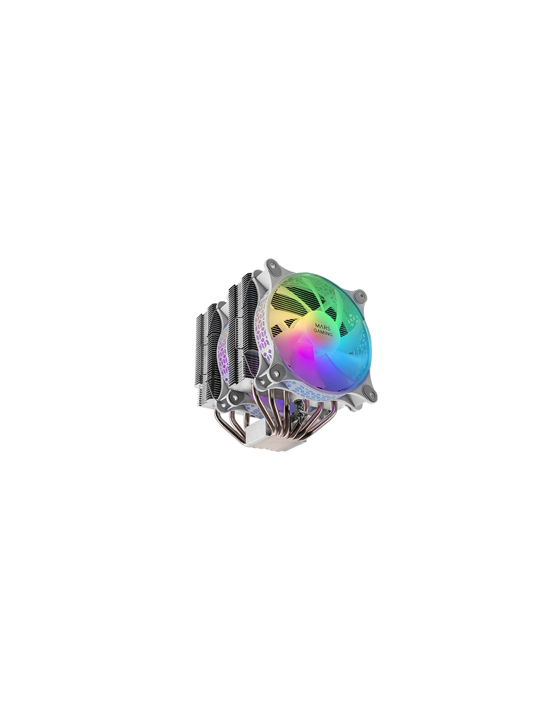 O dissipador de calor mais potente, com torre dupla de dissipação e dois ventiladores ARGB silenciosos. Até 300W de dissipação para vencer um grande número de refrigerações líquidas e com todas as vantagens da refrigeração a ar.