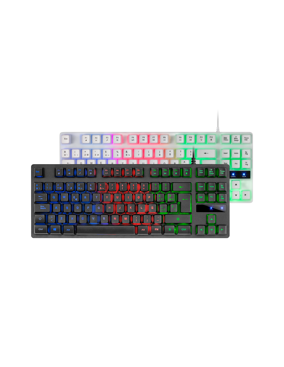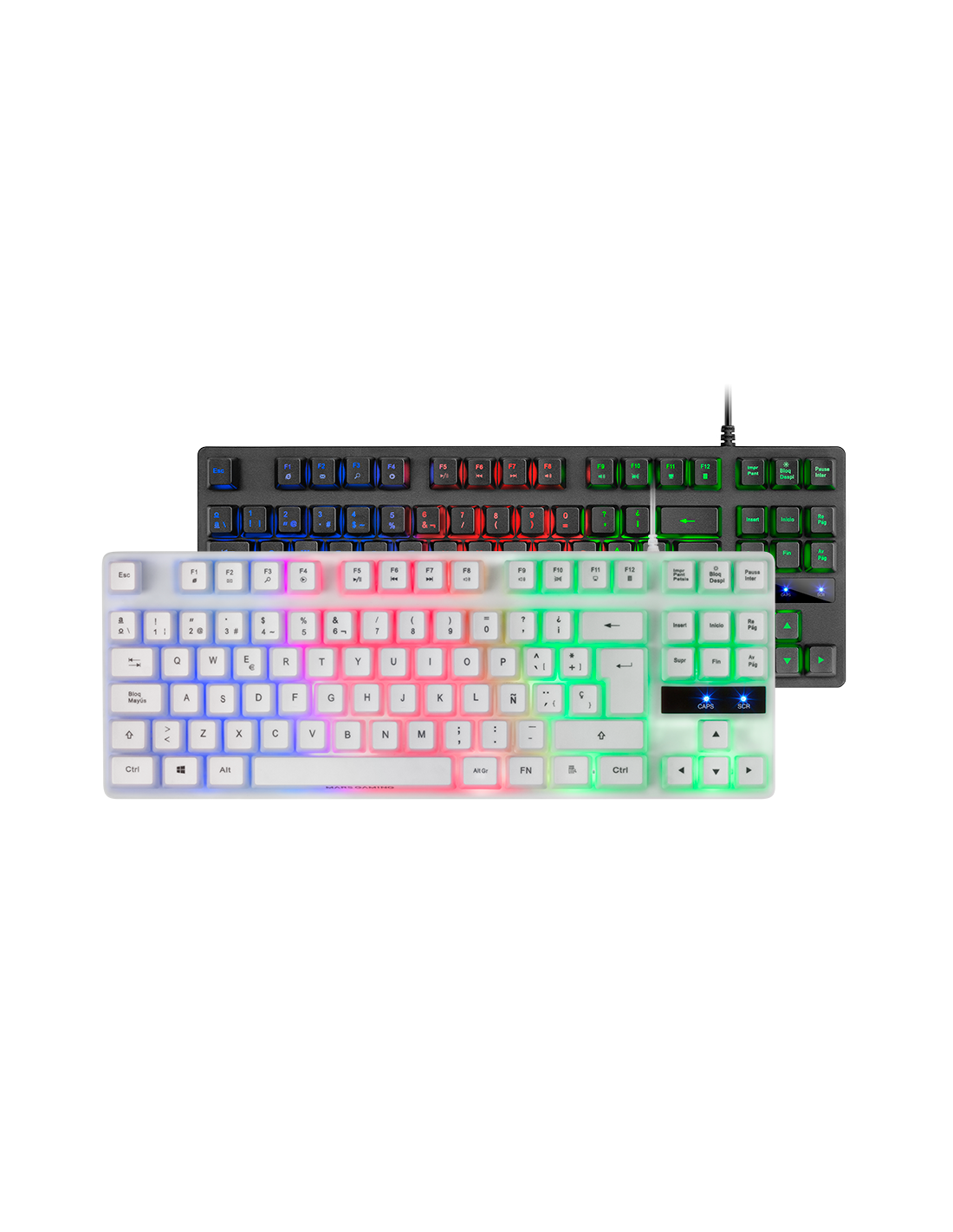 Tecnologia híbrida H-MECH em tamanho compacto. O melhor dos teclados mecânicos e dos teclados de membrana combinados. Espectacular iluminação arco-íris FRGB e dois cores branco/preto disponíveis.