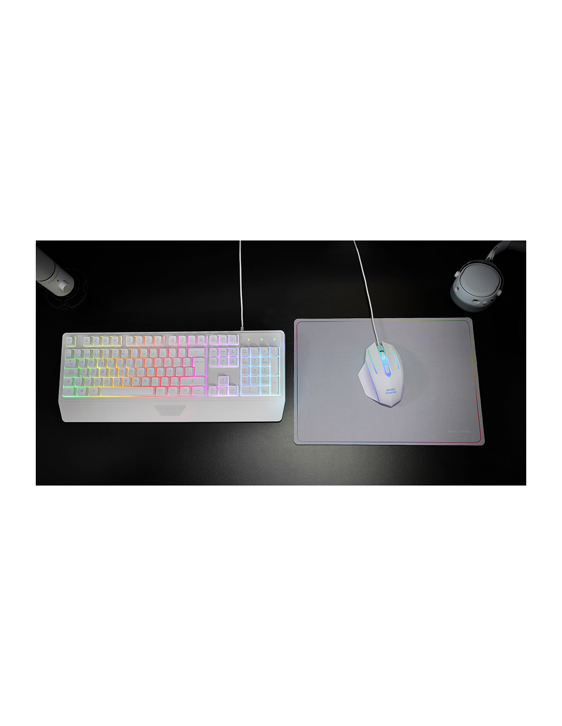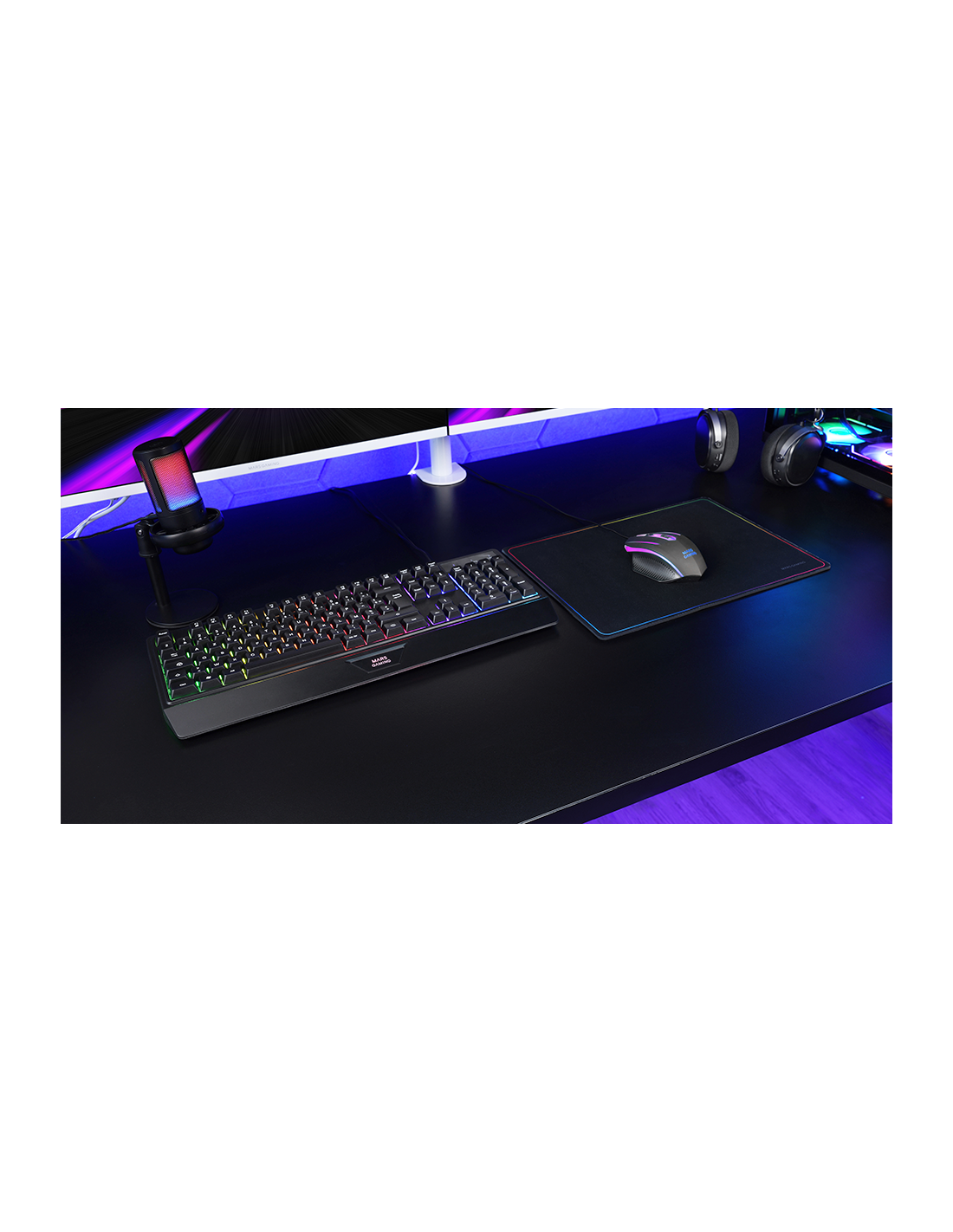 O teclado MK124 combina precisão mecânica com a suavidade de um teclado de membrana graças à sua tecnologia H-Mech, oferecendo toques rápidos e silenciosos. Seu design ergonômico com apoio para os pulsos, iluminação FRGB Rainbow e compatibilidade multiplataforma, torna-o perfeito para jogadores de todos os níveis.